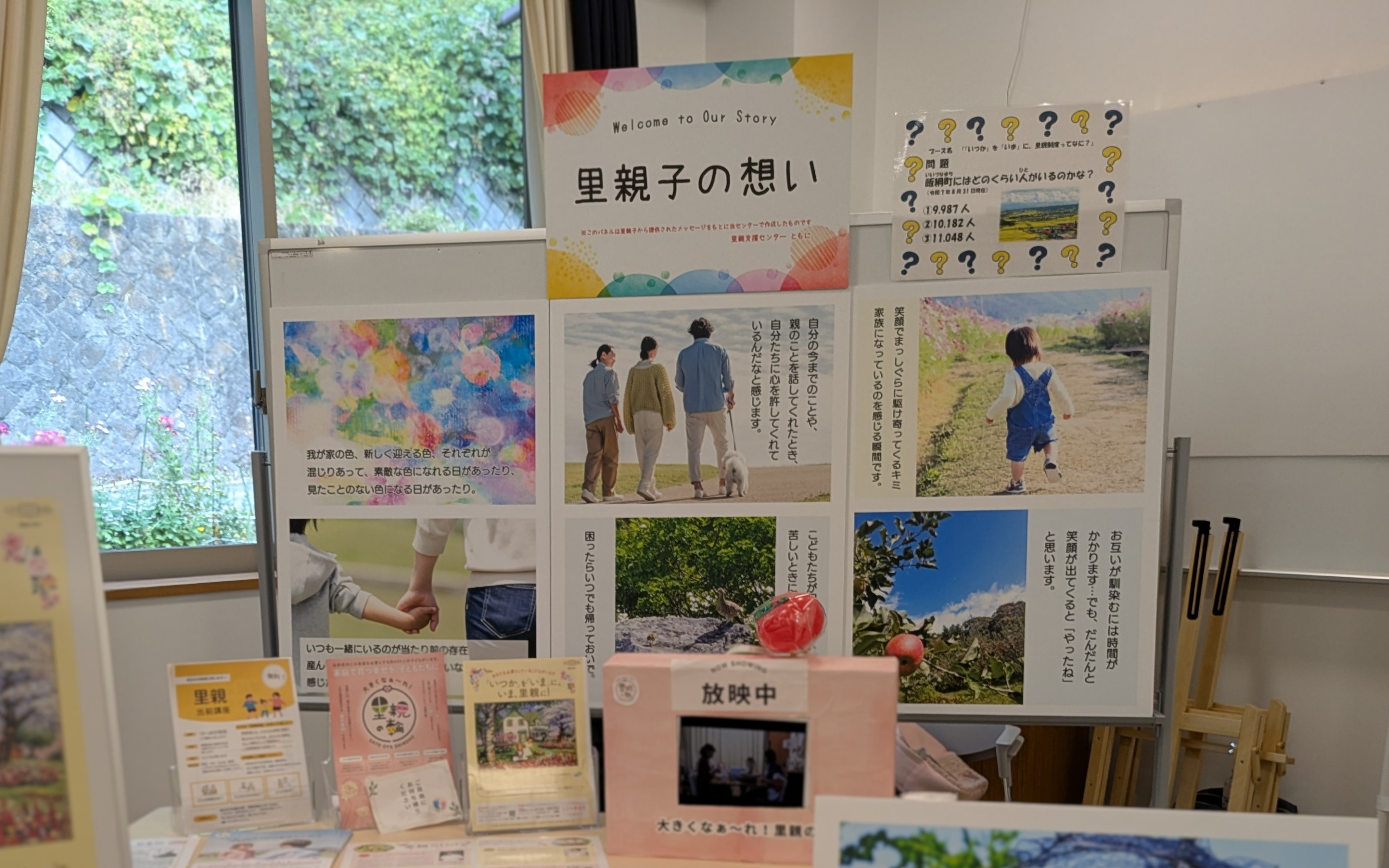 力を入れているのは写真展です。里親家庭の日常を撮影した写真をA2サイズのパネルにして展示します。5年ほど前、担当エリア内で家族写真を募ったところ、畑での農作業や、海水浴、ひな祭りなどの様子を写した作品が集まりました。曇りガラスにおばあちゃんがドラえもんを描き、こどもがそれを見て喜んでいる姿など、写真をひと目見ると里親家庭の温かさが伝わります。