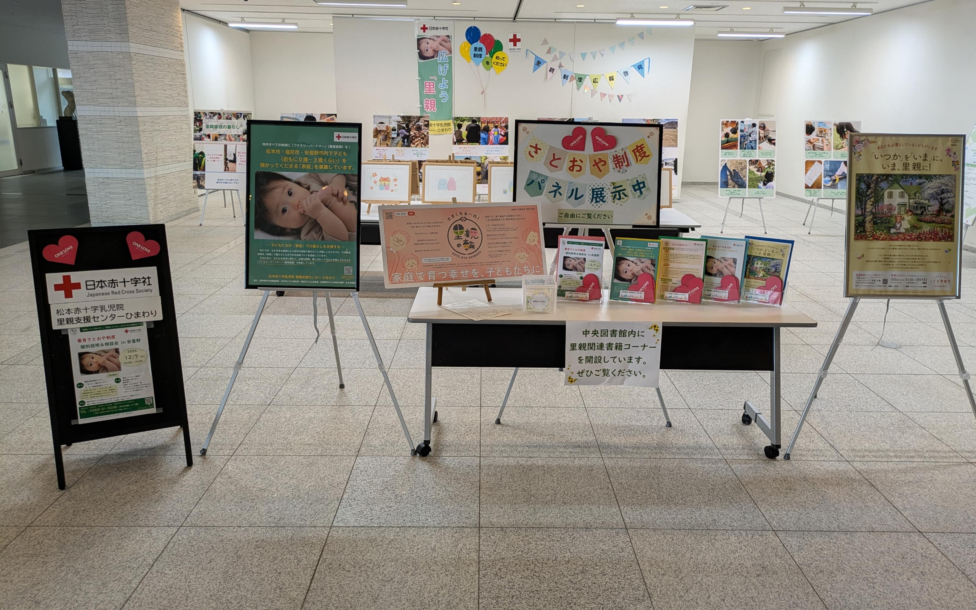 図書館ギャラリーなどで里親家庭を紹介する写真展「松本赤十字乳児院里親支援センターひまわり」