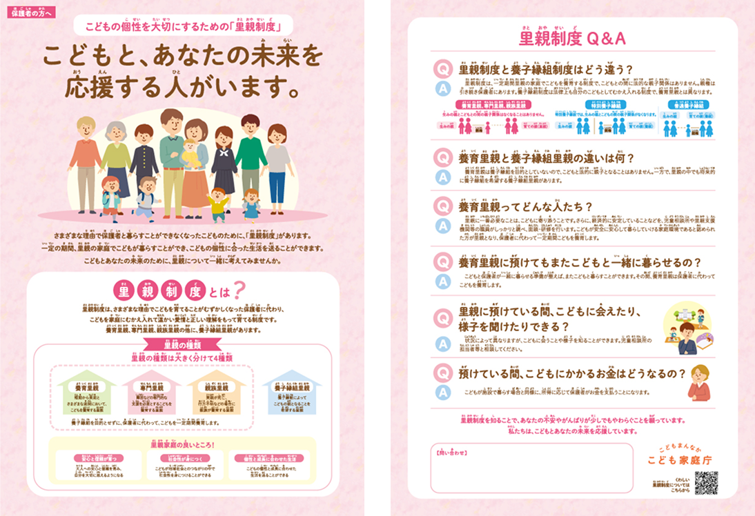・「自治体・関係者の方へ」のページで公開している広報物は、全国の自治体における里親リクルーティングに使用可能です。
